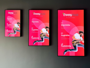 Taip, muziką, ekranų turinį galite valdyti patys per internetinę platformą – keliais paspaudimais, net iš telefono ar planšetės.