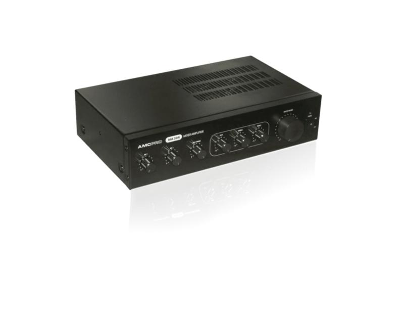AMC MA 30X kompaktiški ir universalūs stiprintuvai–mikšeriai tinkami tiek muzikai transliuoti, tiek ir pranešimams skelbti. 30W galingumas, turi 4Ω, 8Ω, 16Ω ir 100V išėjimus audio linijoms. AUX, Phono ir mikrofoniniai įėjimai, tembrų blokas. Prioritetinis įėjimas. Prioritetas aktyvuojamas sujungus kontaktus galinėje stiprintuvo panelėje. Plati pritaikymo gama.